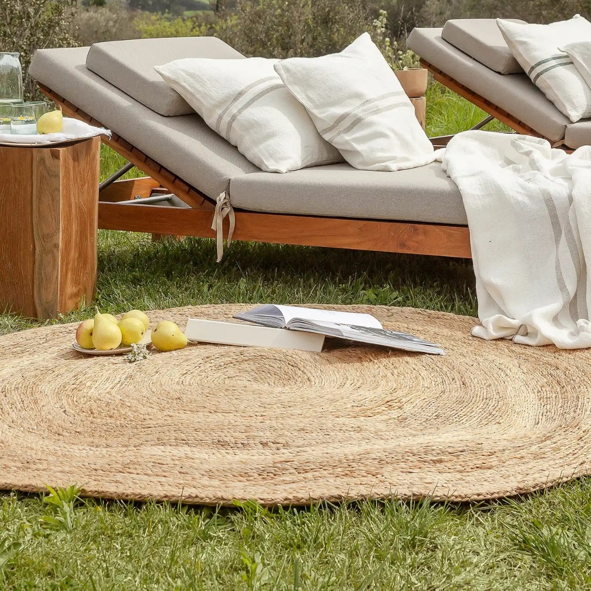 La alfombra redonda Neiyyur, tejida a mano en 100% yute trenzado, aporta un estilo natural y atemporal a cualquier espacio. Ideal para distintos interiores. Disponible en dos tamaños.
