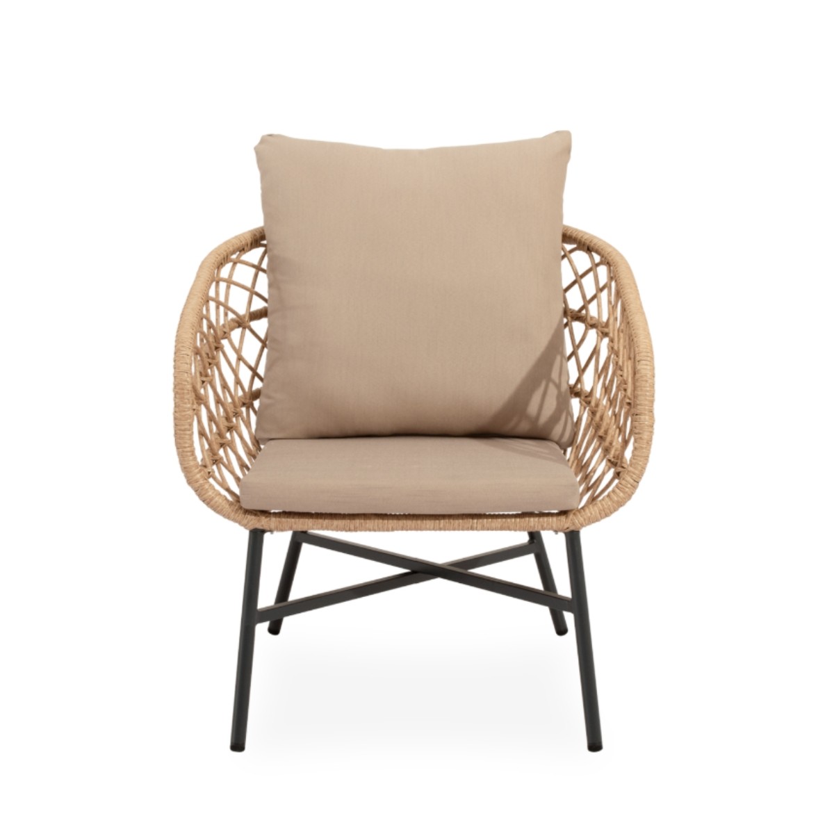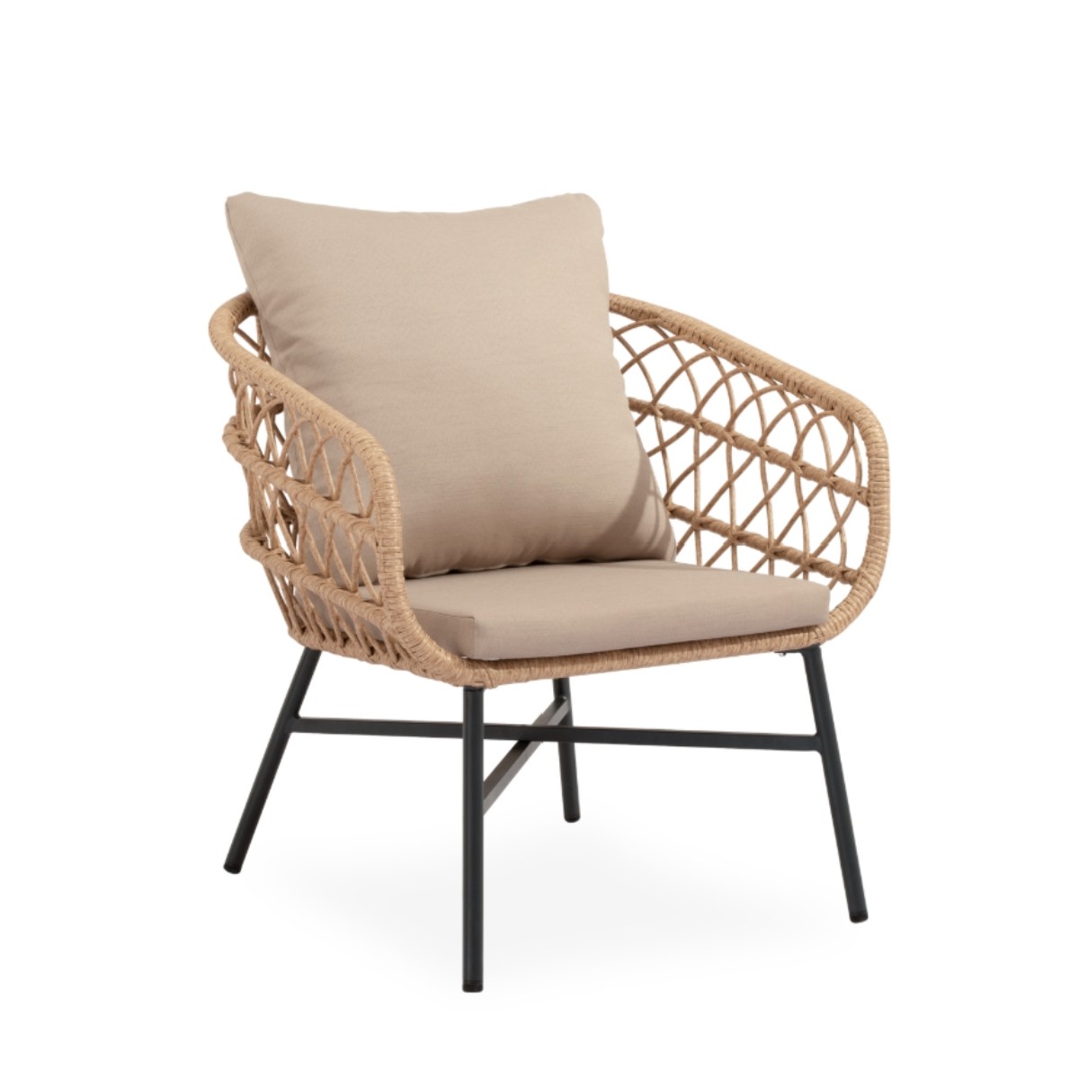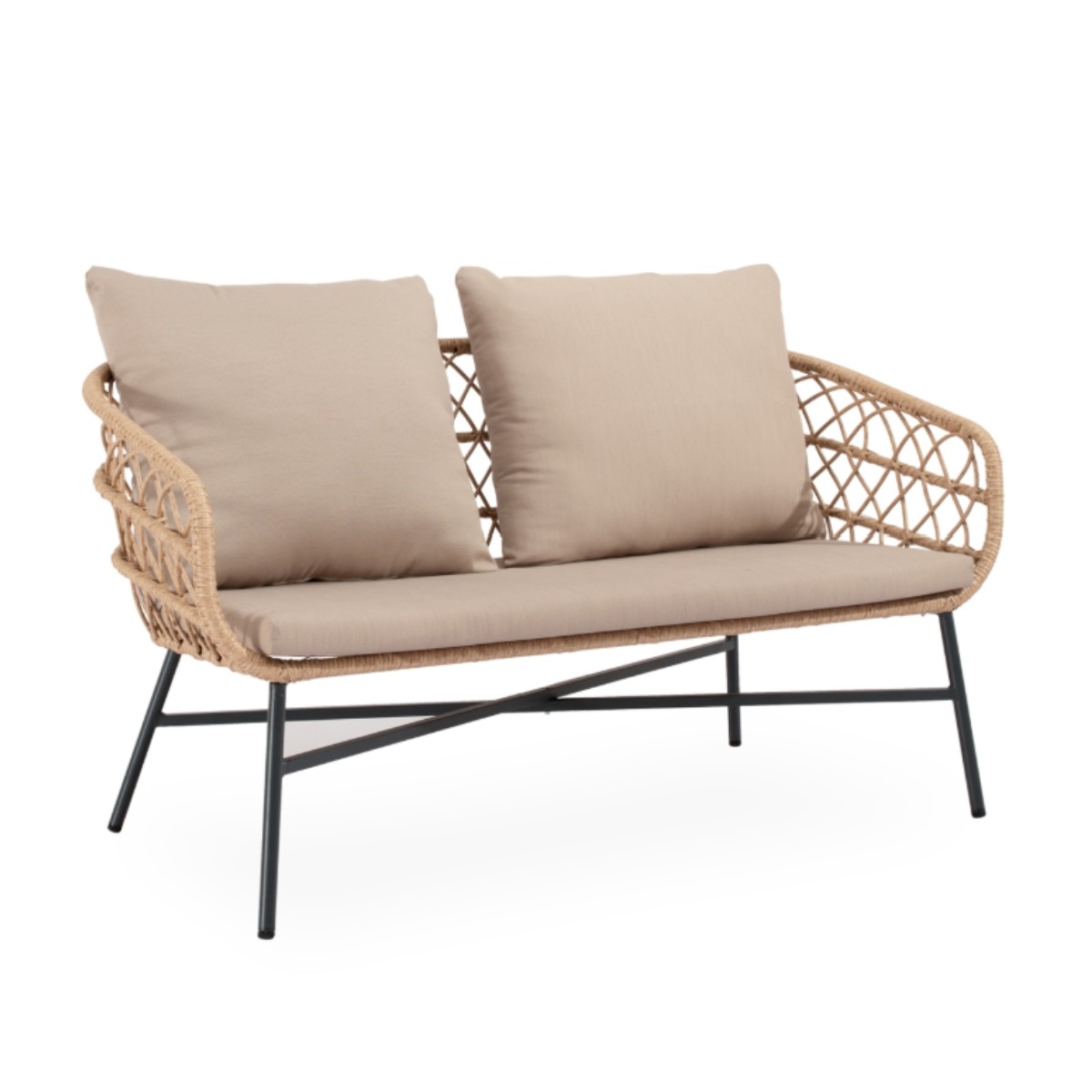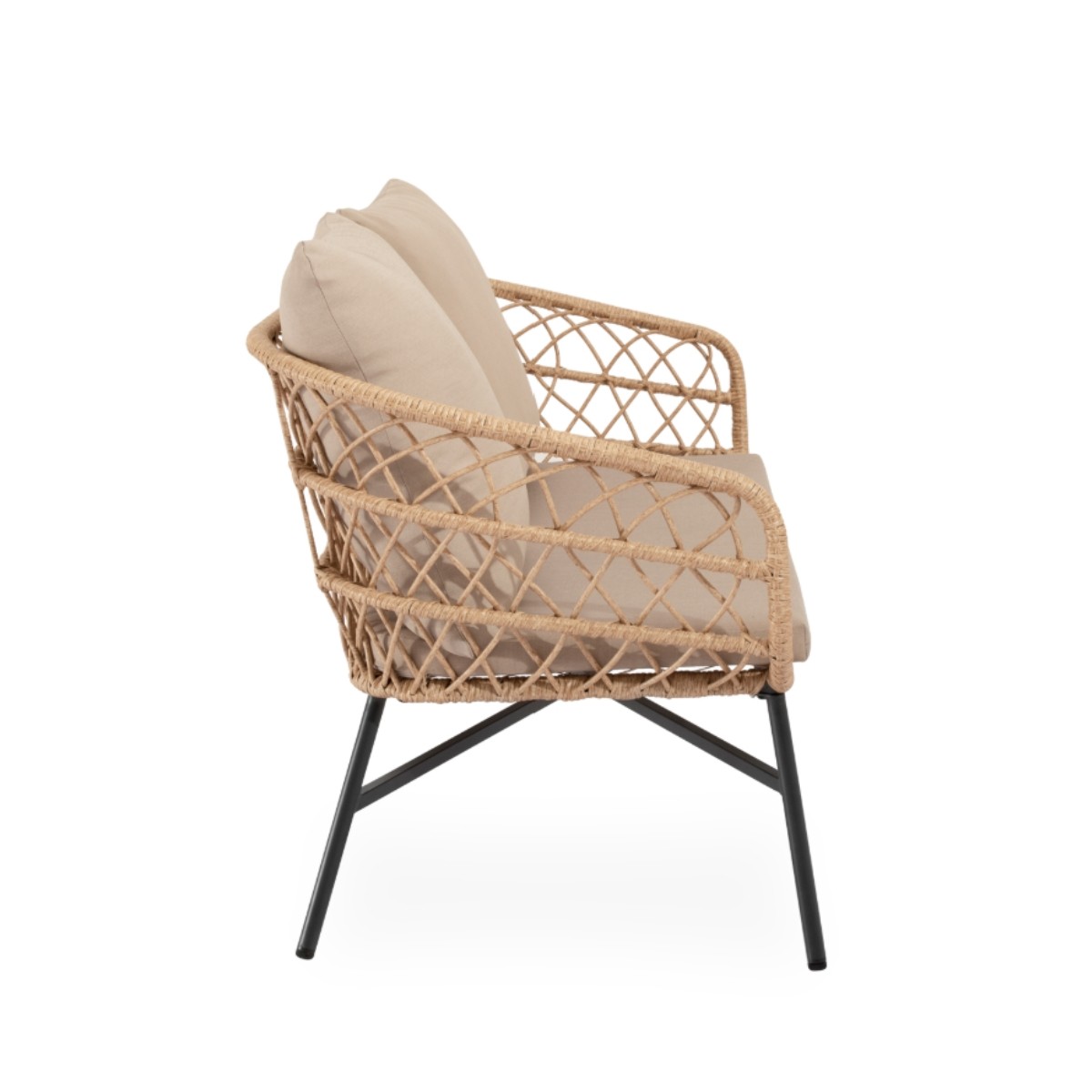 Los cojines ofrecen confort y resistencia, convirtiéndolo en una opción perfecta para terrazas, jardines o porches que buscan equilibrio entre estética, comodidad y practicidad.