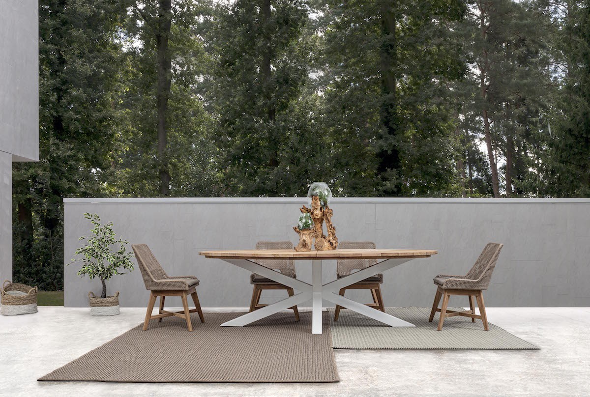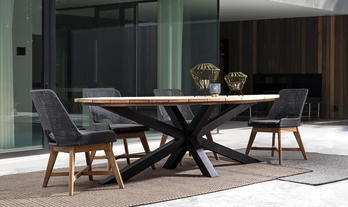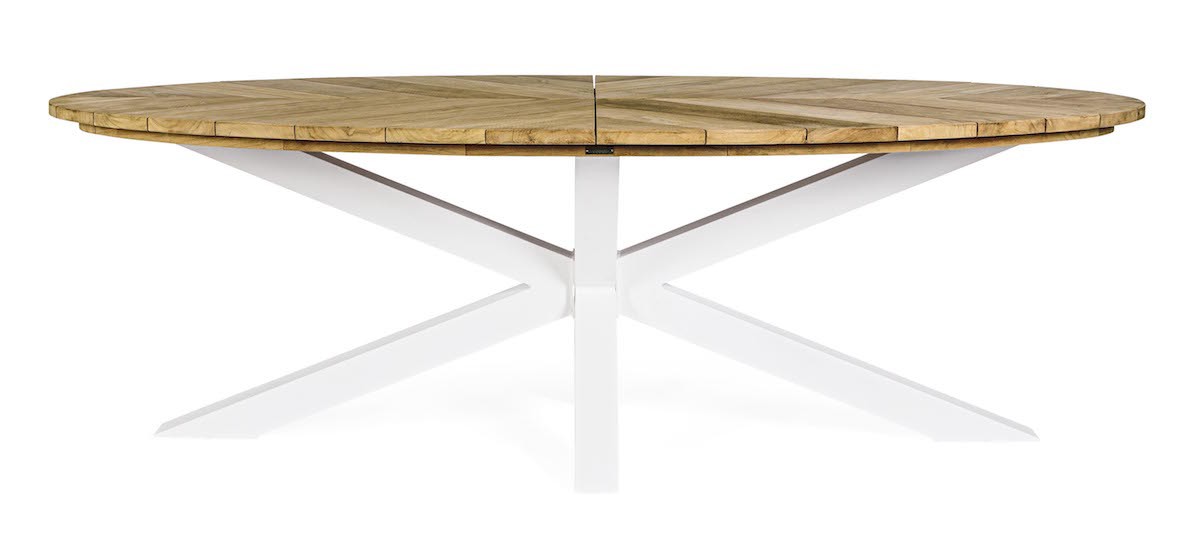 Si eres de los afortunados que cuentan con alguna zona en los exteriores de su hogar, bien sea una terraza, un jardín o un balcón grande, estamos seguros de que te encantará crear el espacio y la composición perfecta mediante muebles para exterior para poder disfrutar al máximo de momentos al aire libre. La mesa de comedor para exterior Palmdale ovalada de Bizzotto Homemotion, será la pieza ideal para darle un toque elegante y sofisticado gracias a la forma original de su sobre y a la llamativa unión que crean sus diversas patas. Al ser un muebles que va a estar expuesto a diferentes agentes externos, como la lluvia, el viento, los cambios bruscos de temperatura, se han utilizado materiales resistentes y duraderos como son la madera de teca y el aluminio, para que se mantengan nuevos como el primer día.