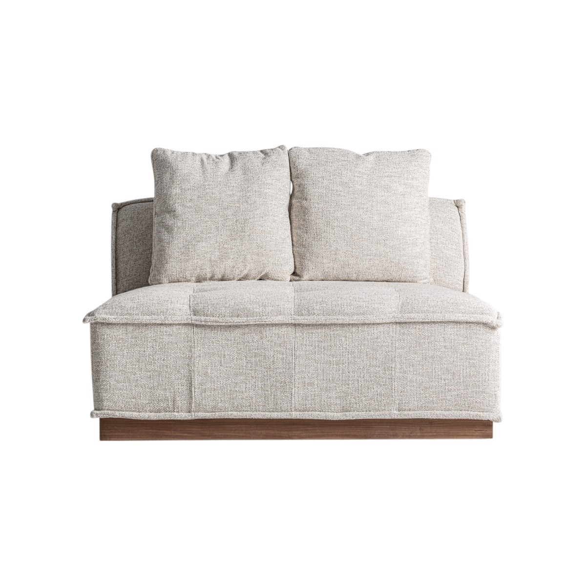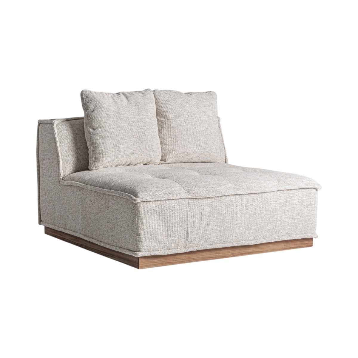 Módulo central Olpe de Vical Home, ideal para exteriores. Con respaldo amplio, cojines incluidos, tapicería hidrófuga y estructura de aluminio marrón.