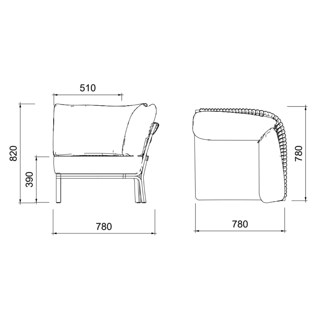 El módulo esquinero Anmore de Mooma Design es una pieza versátil y elegante pensada para crear composiciones de exterior confortables y modernas.