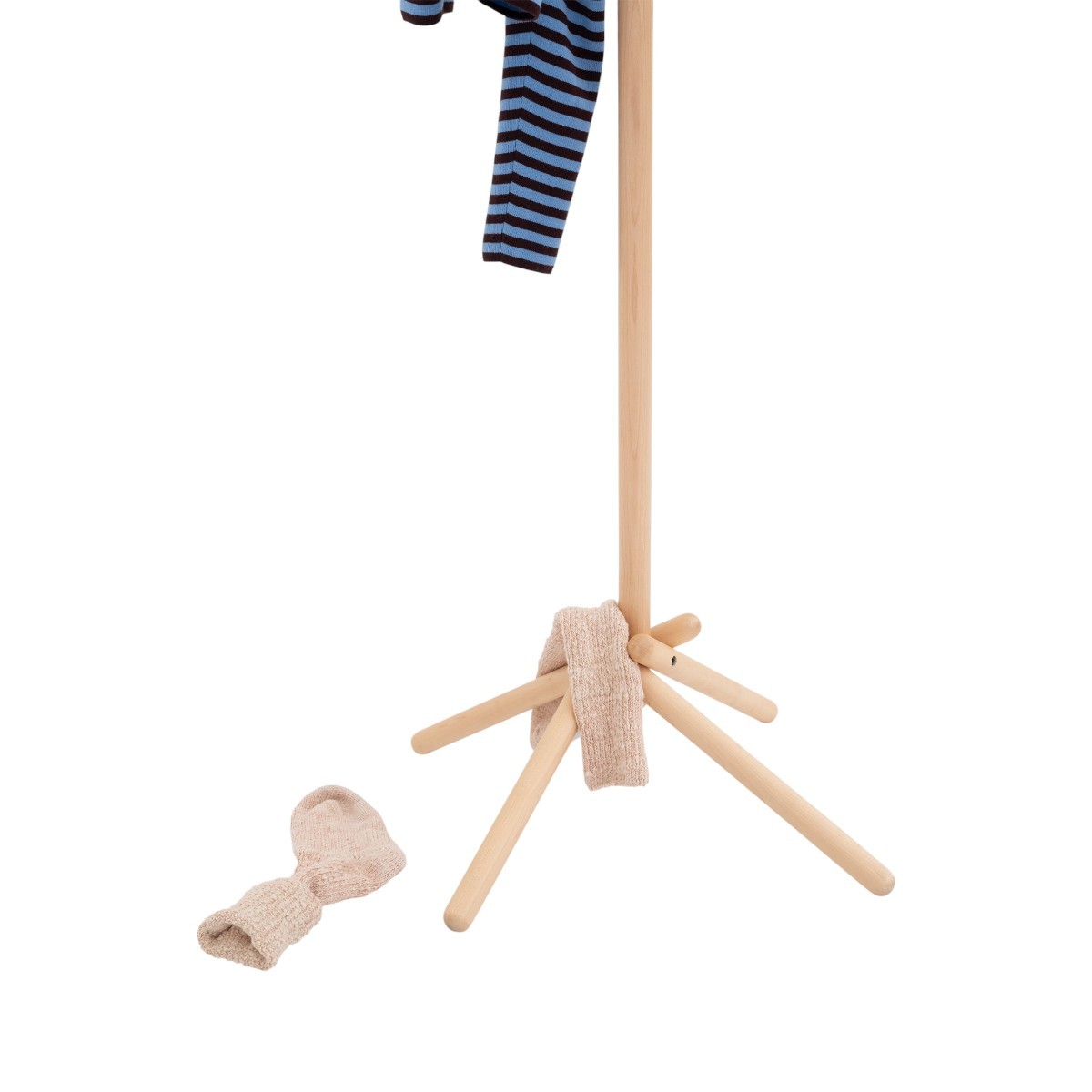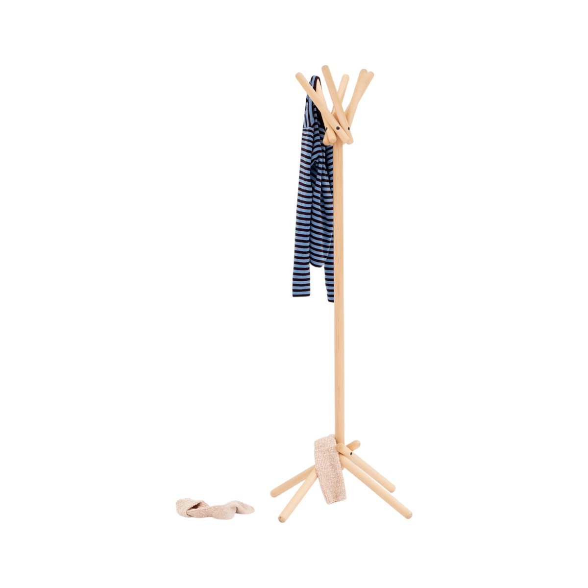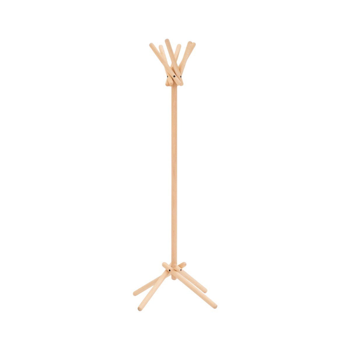 El Broomstick Uno de Campeggi, diseñado por Vico Magistretti, es un perchero plegable de madera de arce y metal negro. Ligero, funcional y elegante.