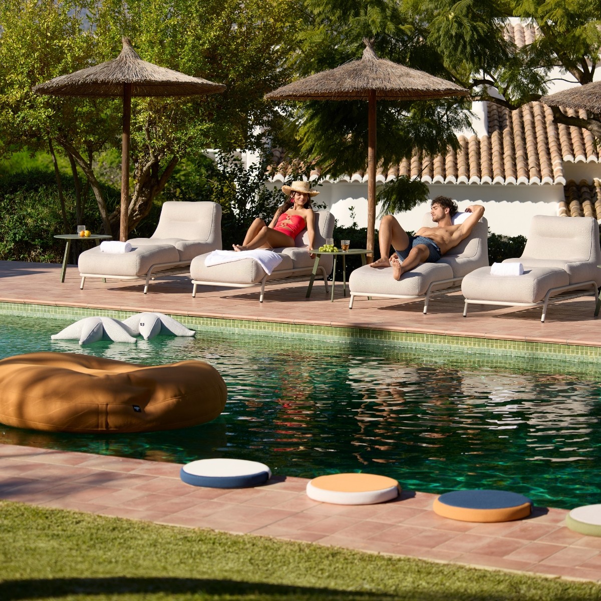 Puff gigante Maria XXL de Ogo, ¡de estilo moderno para tu jardín con piscina!