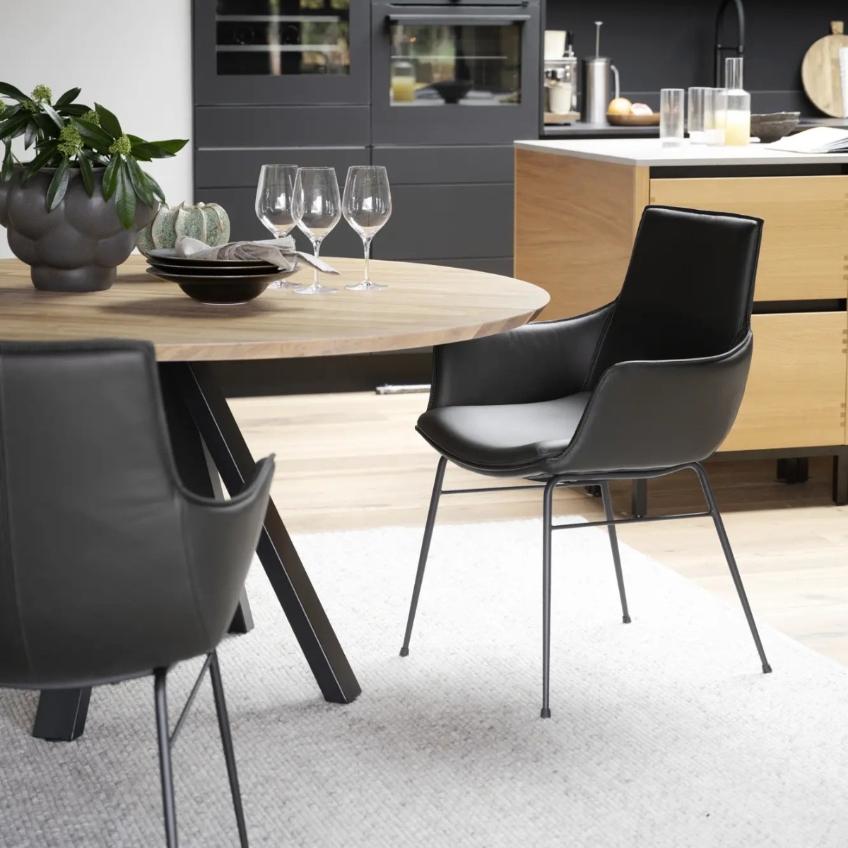 El Set de 2 Sillones Lowell de Rowico es una pieza moderna y elegante disponible en cuero negro o marrón, o en un tejido gris suave.