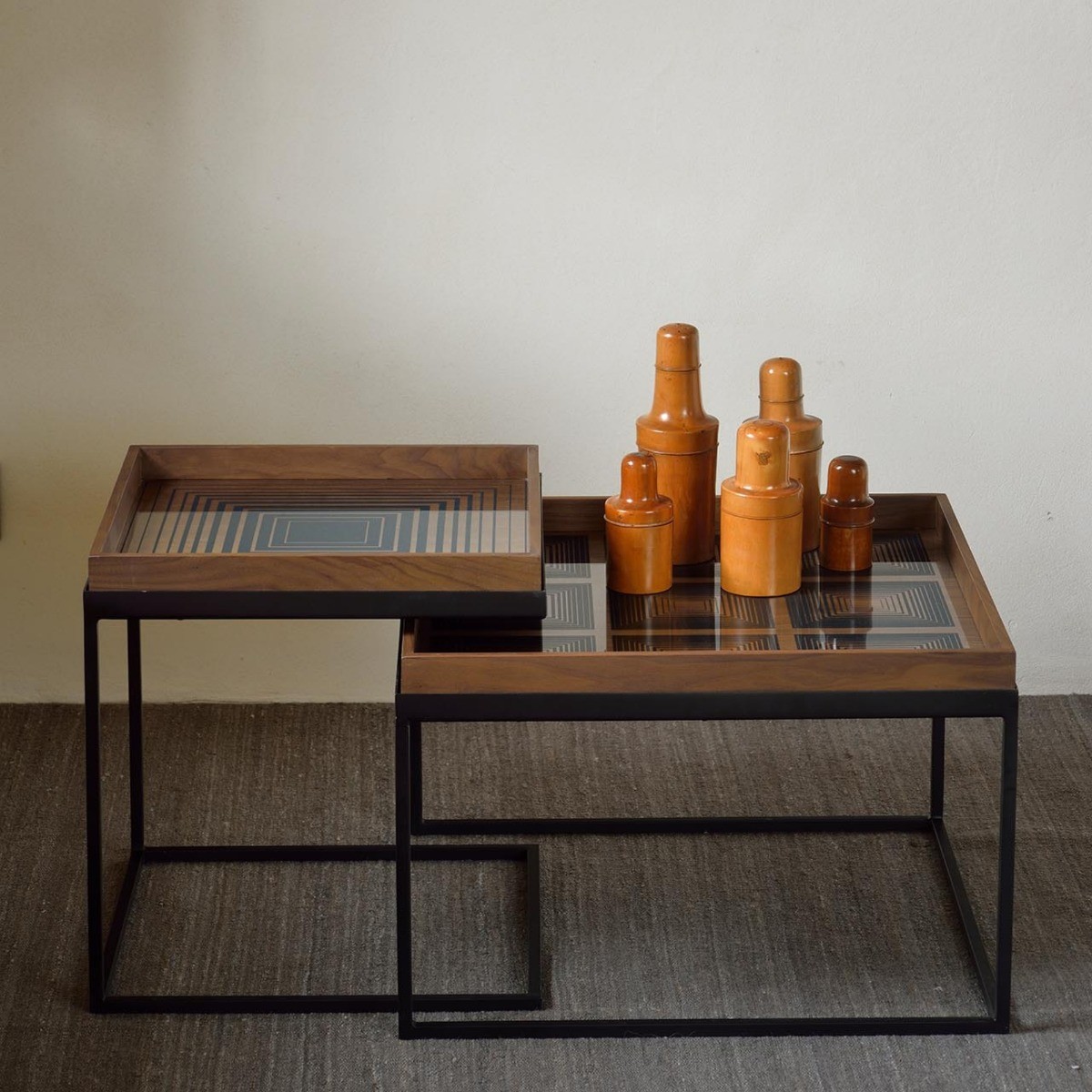 Set de mesas de centro cuadradas para bandejas de Ethnicraft, dos medidas diferentes para que combines las bandejas que tenemos en nuestro catálogo.