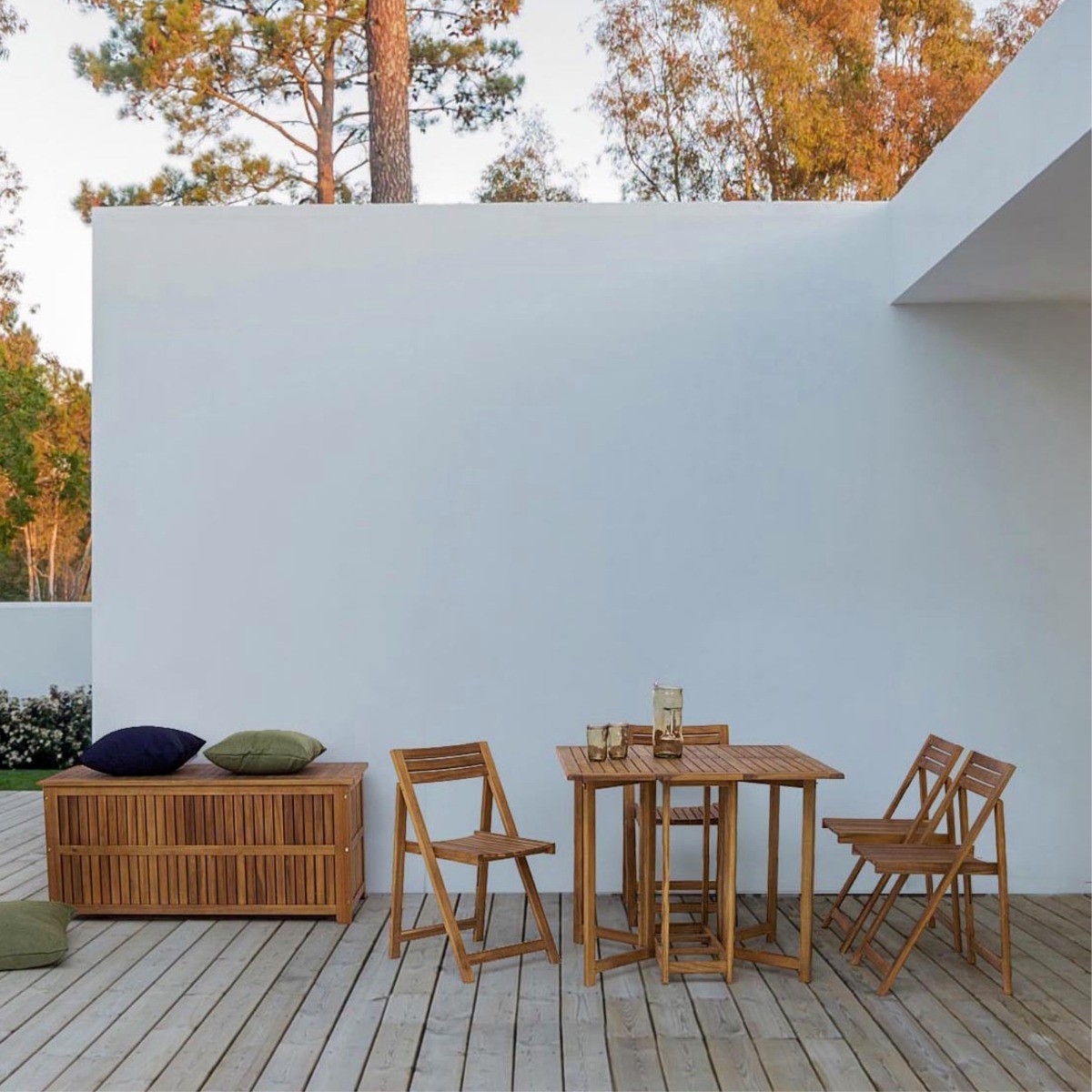 Set de 1 mesa de comedor y 4 sillas Naomi con madera de acacia para jardín. ¡Son plegables!