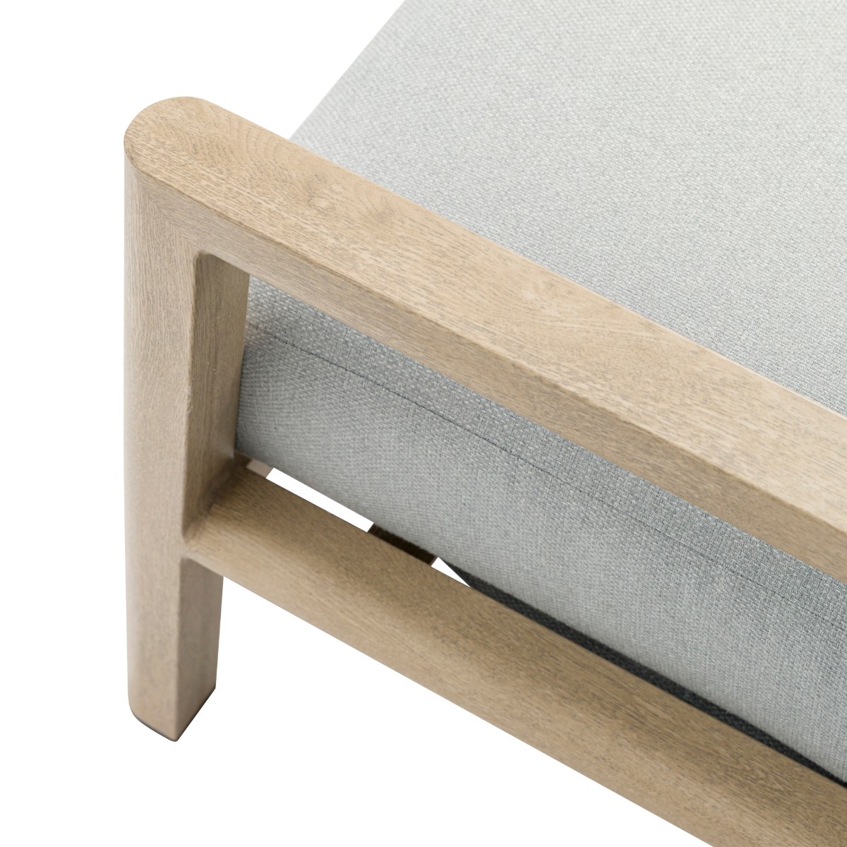 Los cojines de asiento y respaldo, en gris medio, ofrecen un confort óptimo con espesores de 17 cm y 25 cm respectivamente, ideales para largas horas de relajación al aire libre.