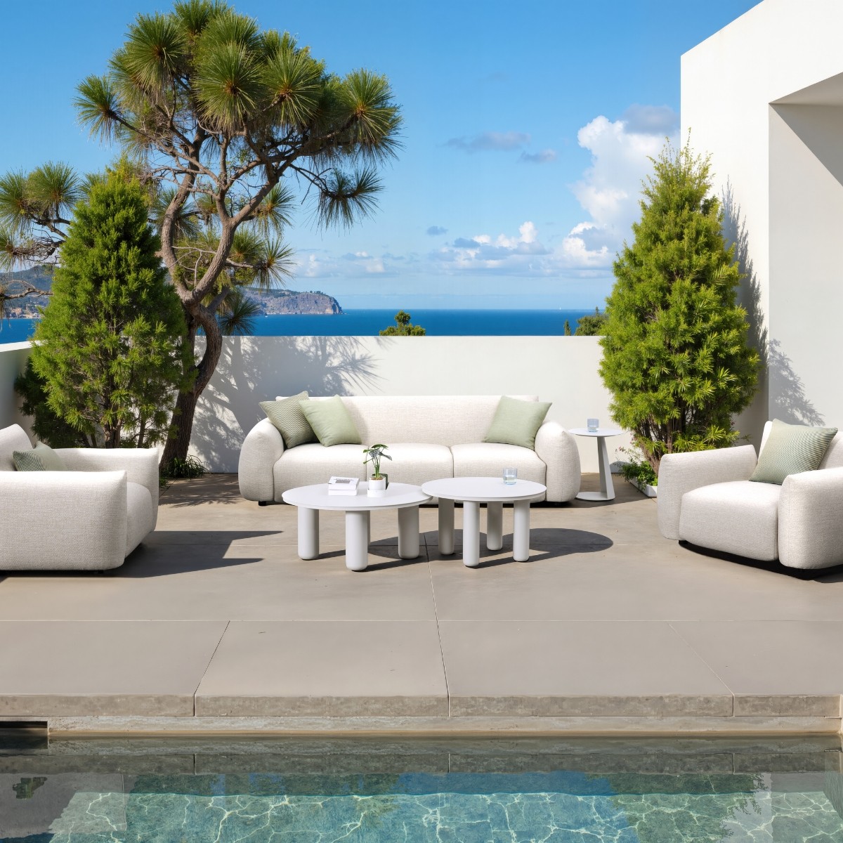 El sofá de 3 plazas Riverside de Mooma Design es la elección perfecta para transformar cualquier espacio exterior en un entorno elegante y cómodo.