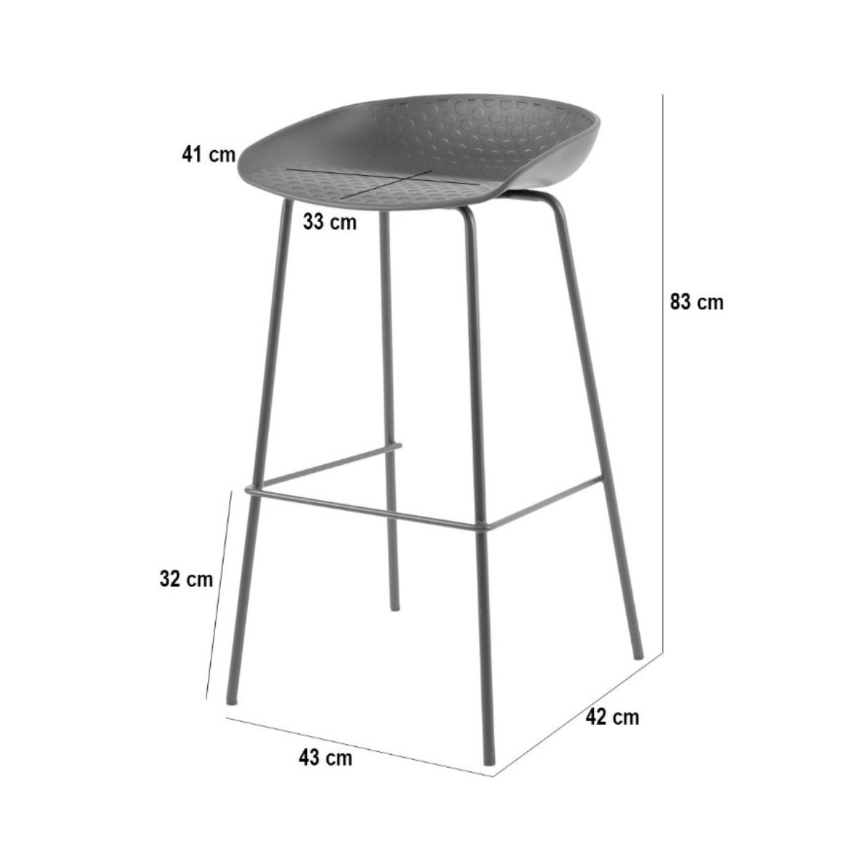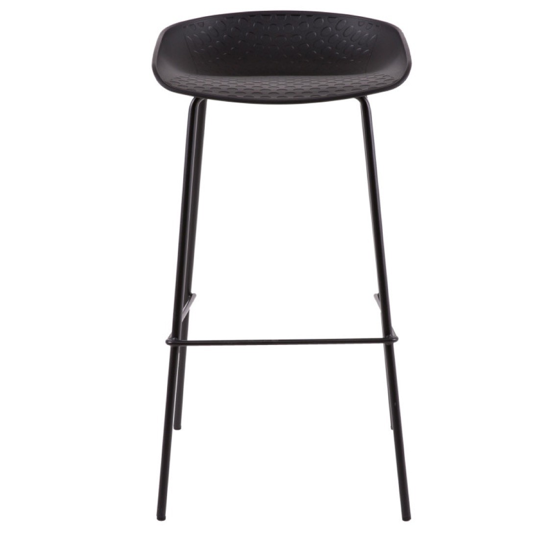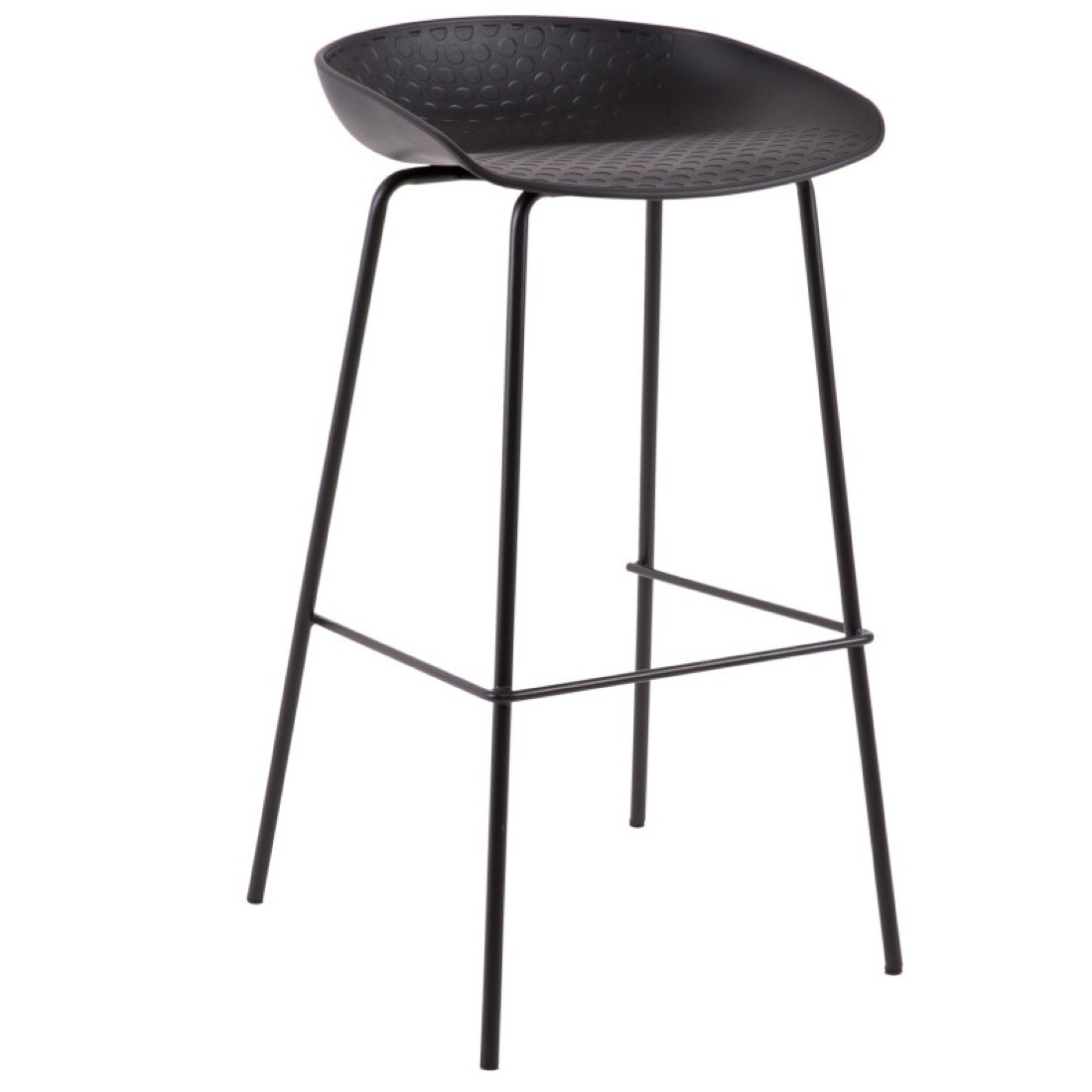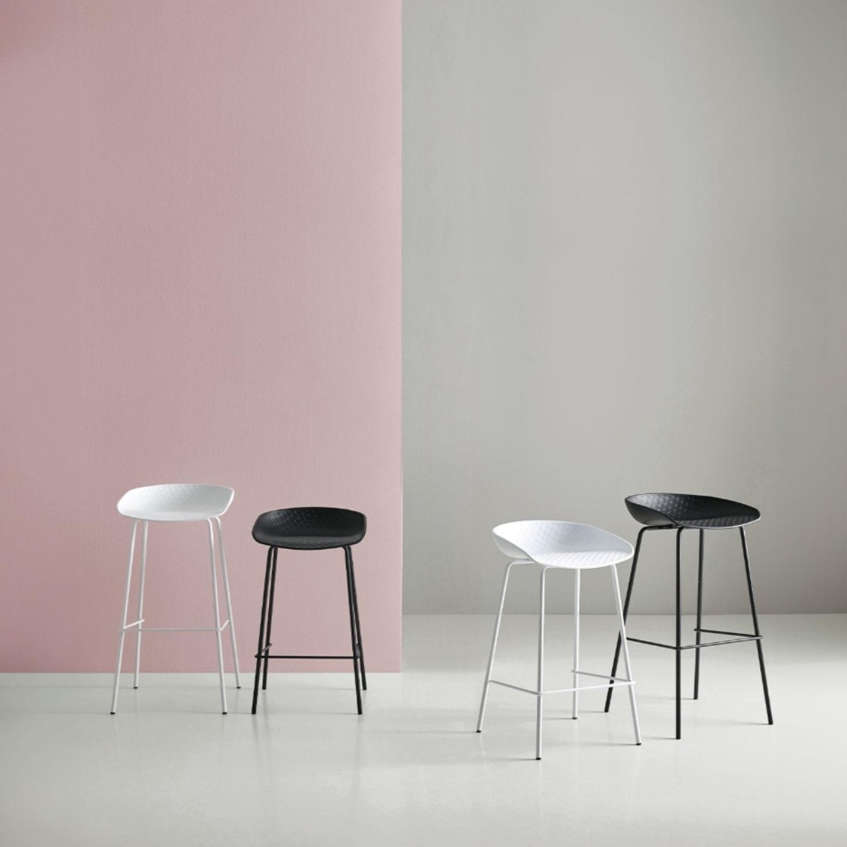 El taburete alto Alene cuenta con una base de metal y asiento en polipropileno. Disponible en dos colores.