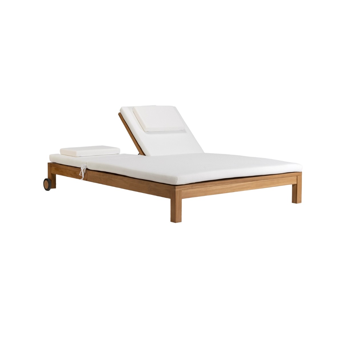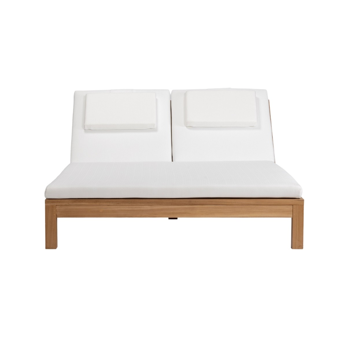 La tumbona doble Genesis combina diseño minimalista y calidez natural. Con cojines disponibles en blanco o beige, su estructura de madera de teca ofrece elegancia y resistencia.