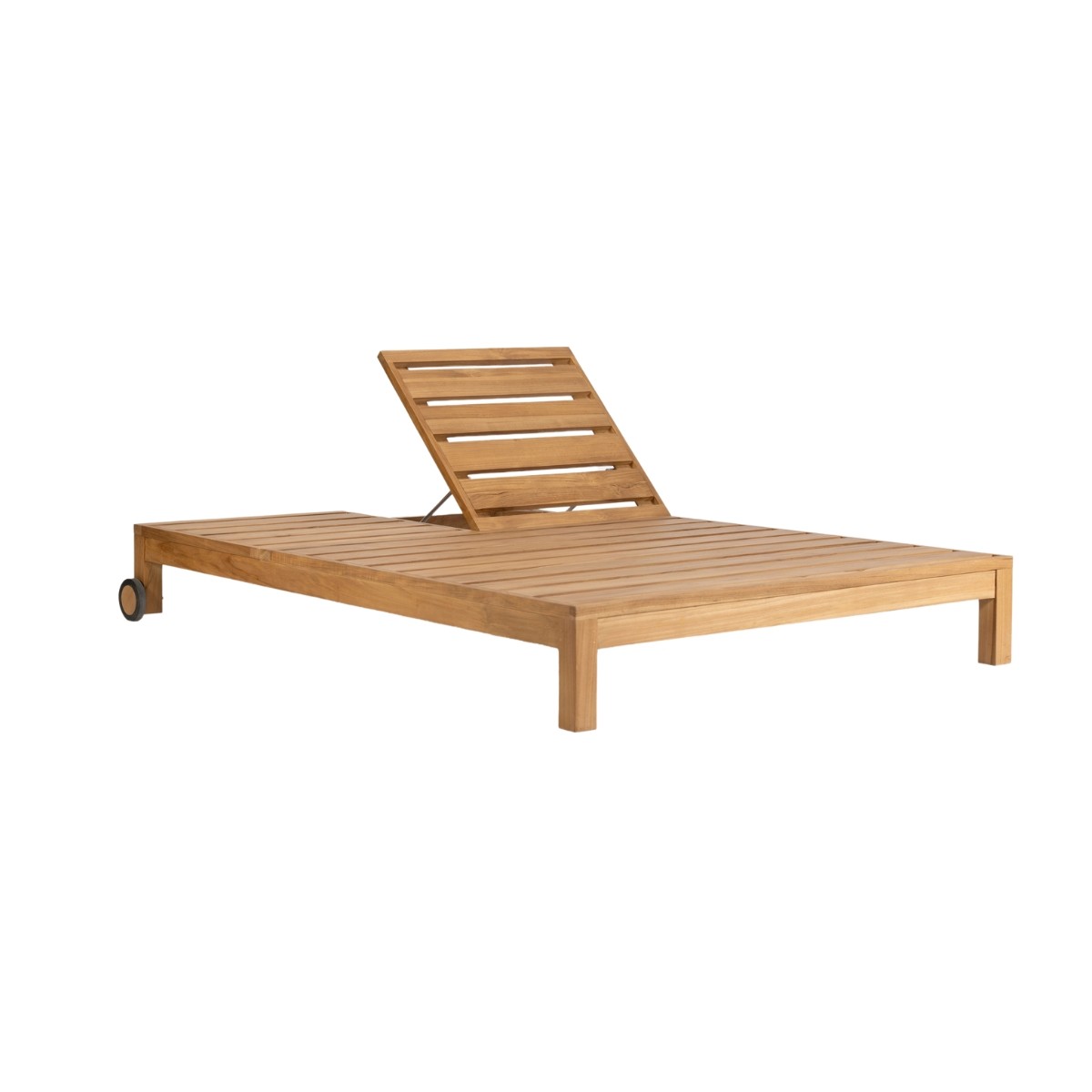 La tumbona doble Genesis es una pieza excepcional que aúna sobriedad, funcionalidad y diseño atemporal. Fabricada con madera de teca de alta calidad, esta tumbona destaca por sus líneas depuradas y su acabado orgánico, que realza la belleza natural del material.